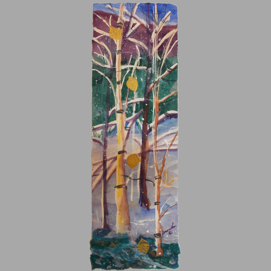 Aspen Frost Original 7" X 21" Watercolor and Collage (Mixed Media) on 300 pound paper (15" X 30" framed) (SOLD) Next Original >